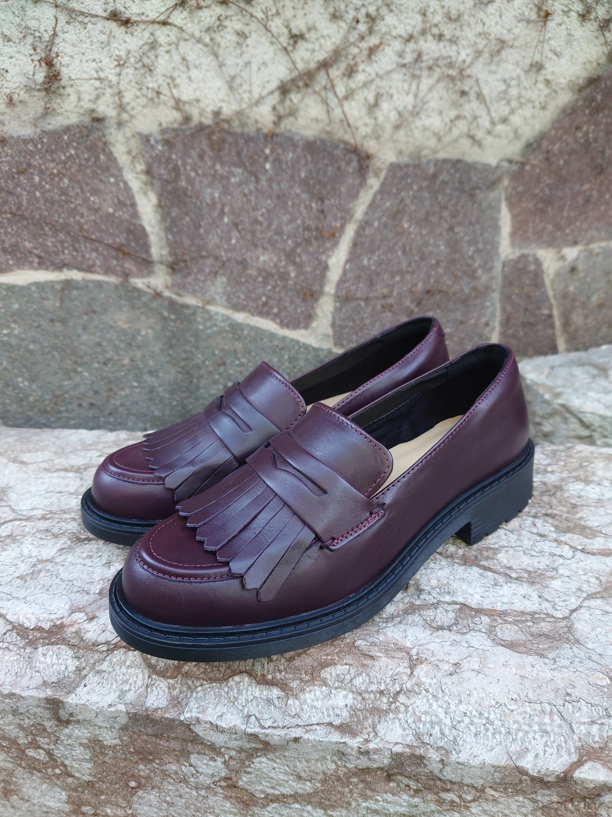 - Materiale: Pelle di alta qualità in color bordeaux per un look elegante e duraturo.